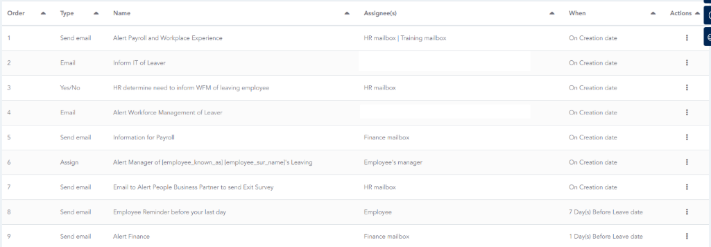 - Name = Send email to Employees Manager notifying of Employee leaving and tasks to be completed.