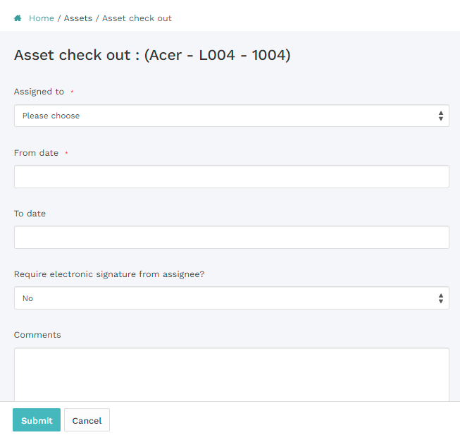 Once they click on this notice, they will be taken through to the dedicated screen where they can electronically sign to confirm receipt of the asset.