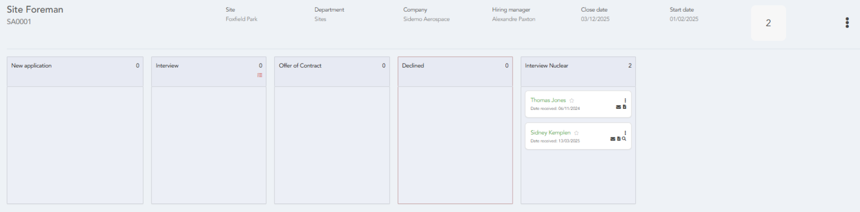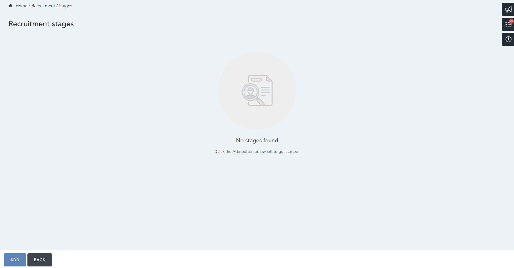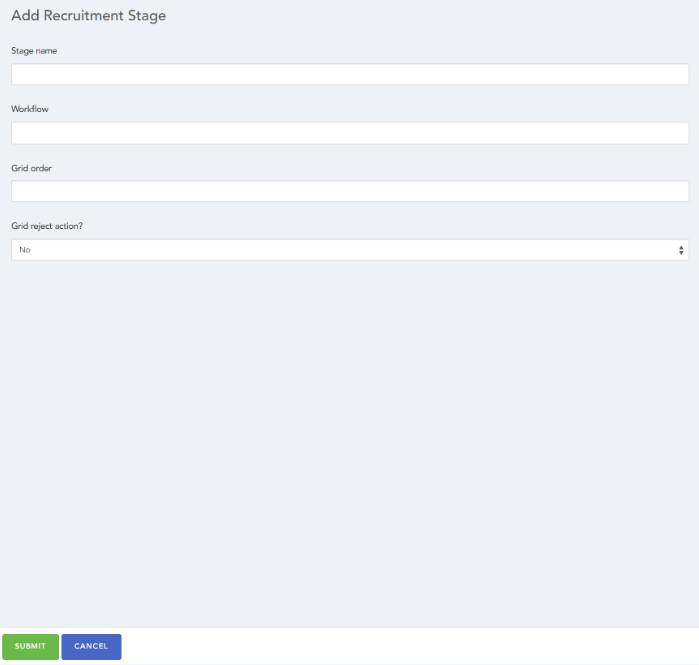 Press the submit option to create the recruitment stage. Once you have created you can view the stages within the Candidate Grid View.