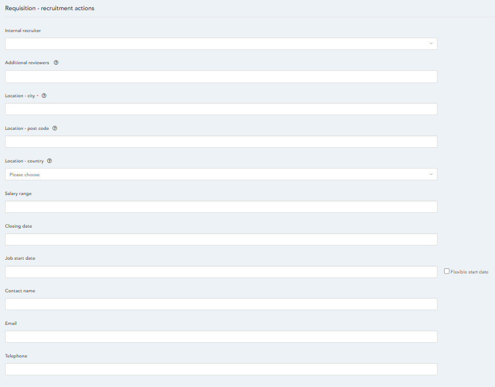 Closing date - Enter the closing date for the role. Note: When the closing date has passed the requisition will no longer be visible on your recruitment portal.