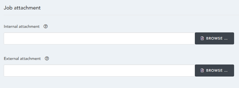 - Internal attachment - Attach any internal documentation used for the recruitment process. Note: These will only be visible Internally within the system and will not show for the Candidates.