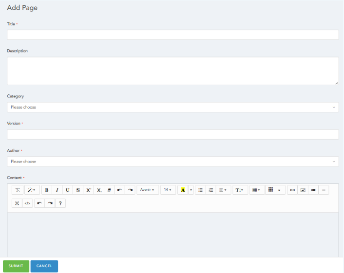 Press submit to finalise your Page Category. Select Cancel to return to the Page Categories Table, from here you can add more Categories.