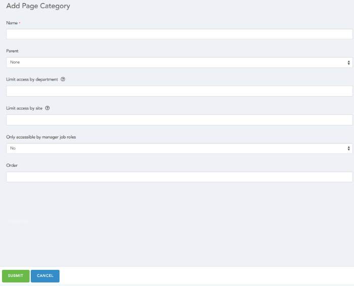 - Order - This is the Order in which you want the Page Categories to display to an employee when they go to Pages. Setting this to 1 will put the Category 1st in the list.