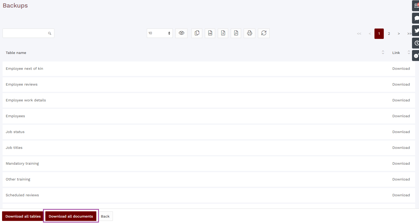 Alongside being able to take CSV file backups of all of your data at any time, it is also possible to download a Zip file containing all documents which are present in the system.