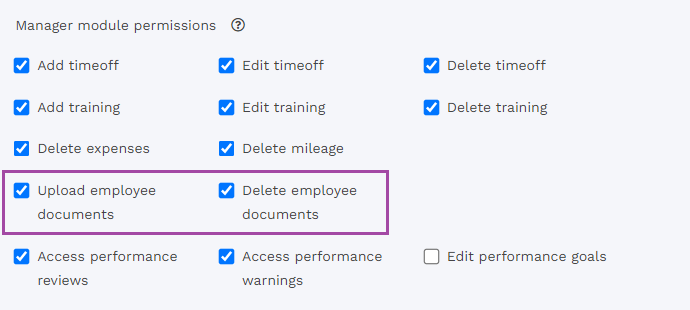 There is an option to allow or prevent Manager level users (or HR who are using manager restrictions) from uploading and/or deleting employee documents.
