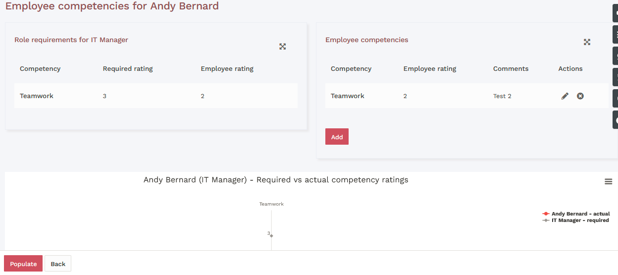 - Go to the employee's file, heading competencies. You will see the competencies associated with this job and the required level.