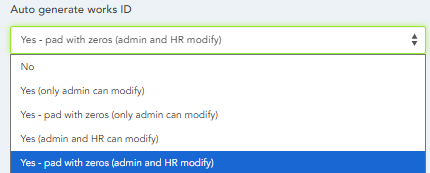 - Yes - pad with zeros (admin and HR modify) - The Works ID will be padded with zeros to create a 6 digit ID - Allows HR users to also make changes