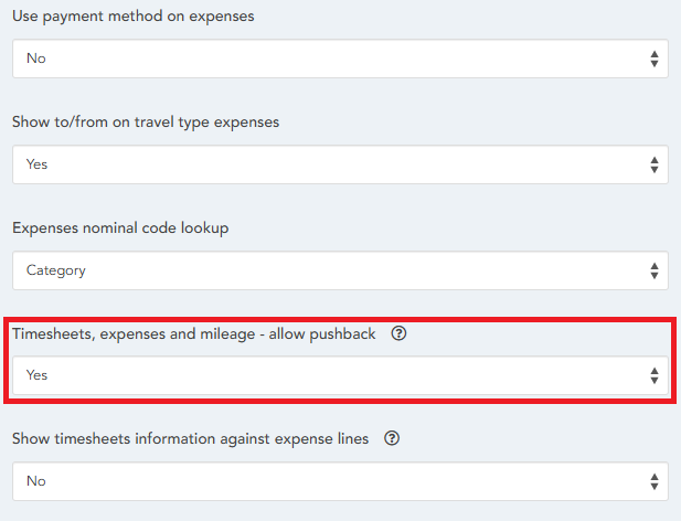 Setting this field to Yes will allow approvers to push an already approved/declined timesheet, expense or mileage claim back to an employee by changing the status back to draft, this allows the employee to edit and update the original report which they can then resubmit to start the approval process again.