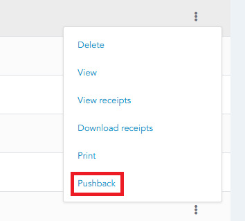 In order to pushback expenses the approver can navigate into Finance -> Expenses, locate the expense claim they'd like to pushback and click the Actions button followed by Pushback.