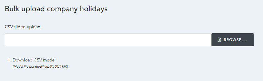 Once you've clicked the Company Holidays Bulk Upload button you will be directed to this page: