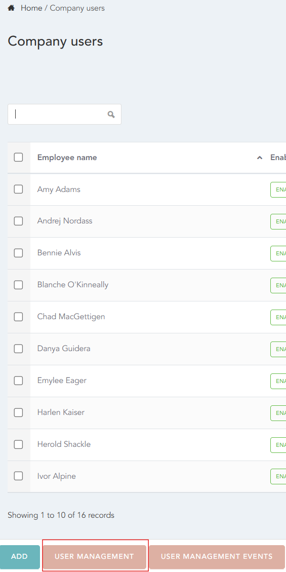 You will also see a change in the USERS page. You can now manage your users from the IDS portal. Once on the user’s page click on "User management" . Once on this page you will have the entire list of users within your organization.