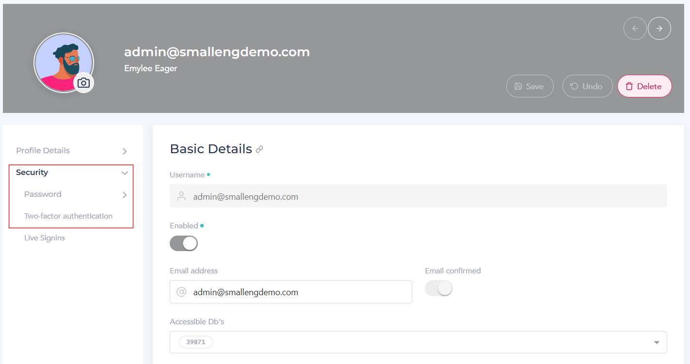 From here, you can turn on 2FA for individual users (if required), you can also reset passwords with a link from this page as well (to be used or shared with the user in question). Keep in mind users now have the ability to reset their own passwords. Please be very vigilant not to DELETE anything on these pages. Similarly to the rest of your account, we strongly suggest you avoid deleting any information as we are unable to recover anything officially deleted.