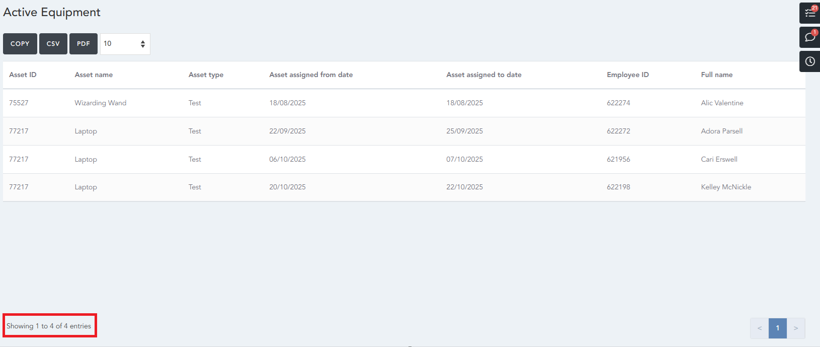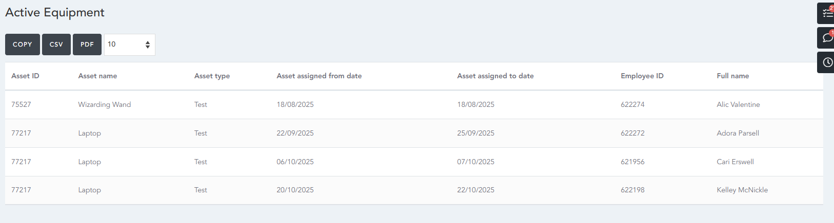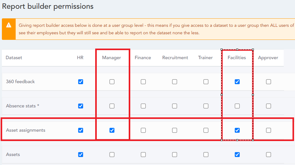 In this example, a manager who has 'Facilities' as their secondary user group, and the report is based on 'Asset assignments' data source, is able to see the same as an Admin access level user running the same report