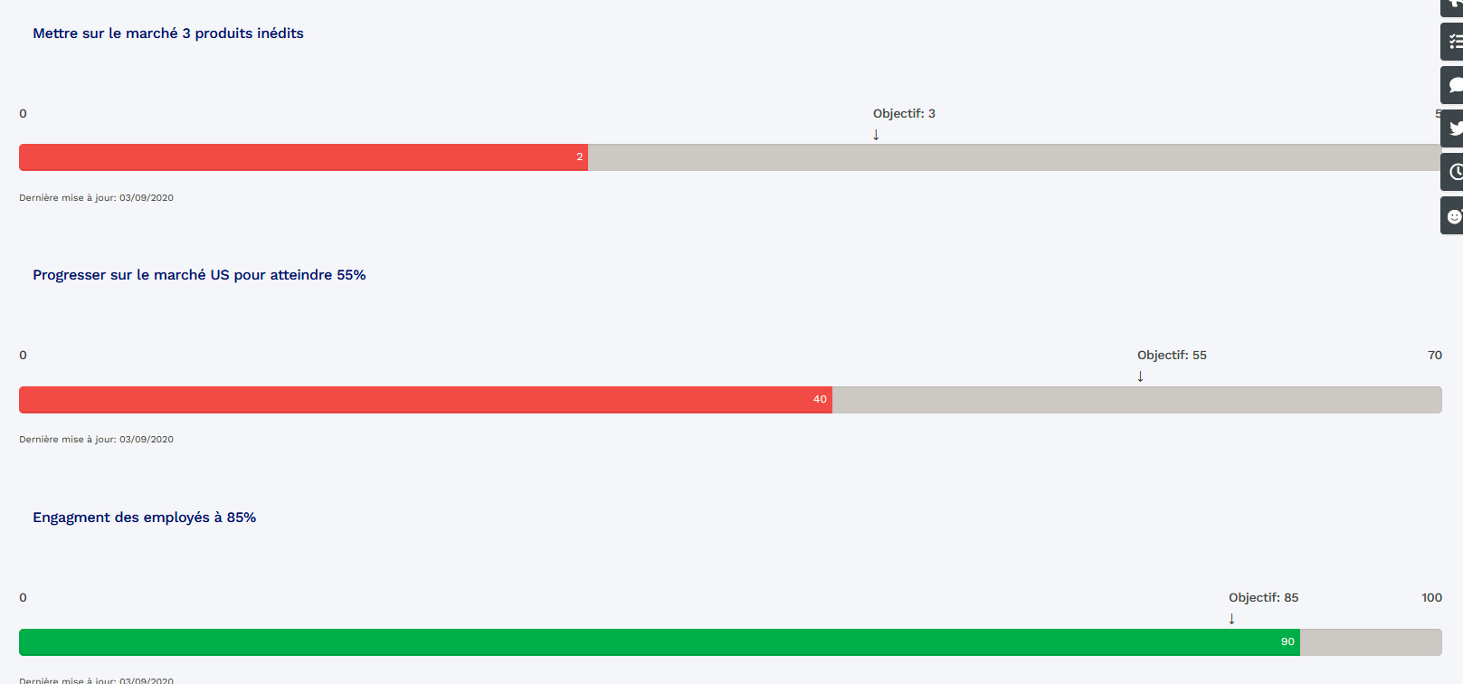 Une fois utilisés, les objectifs d'entreprise doivent être mis à jour régulièrement afin de tenir les employés informés des progrès réalisés.