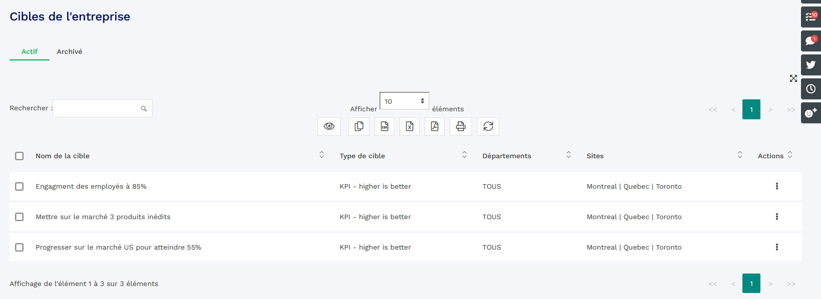 Vous avez également la possibilité d'archiver et d'archiver en masse les objectifs d'entreprise si nécessaire.
