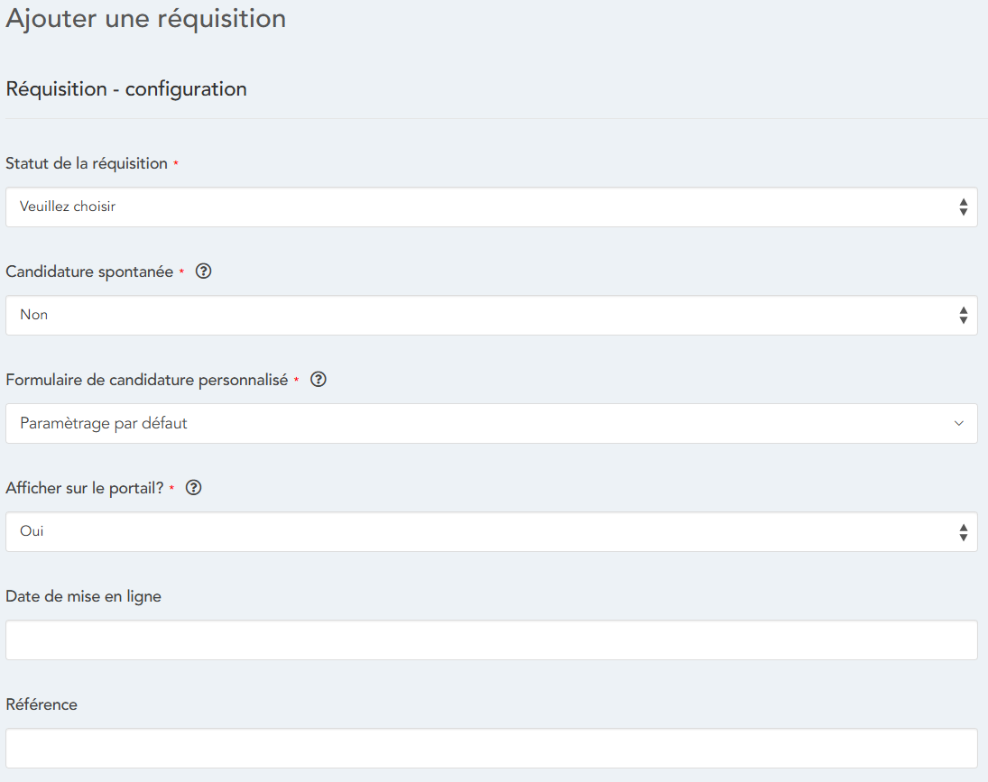 Remarque : tous les champs marqués d'un astérisque * sont obligatoires lors de l'ajout d'une réquisition.
