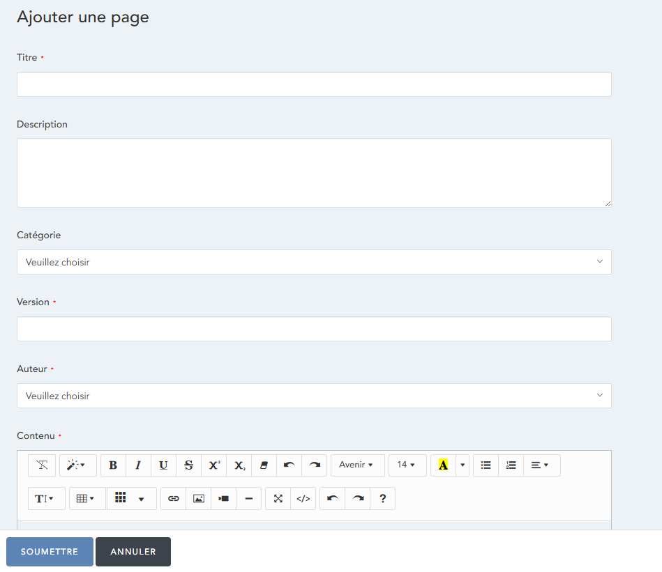Les champs suivants seront visibles sur l'écran Ajouter une page :