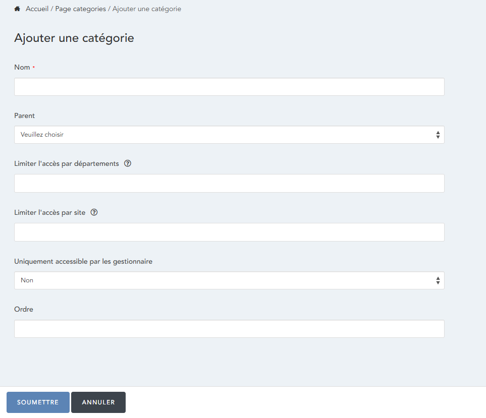- Parent - Dans ce champ, une fois que vous avez créé une catégorie de page, vous pourrez sélectionner une catégorie de page parent.