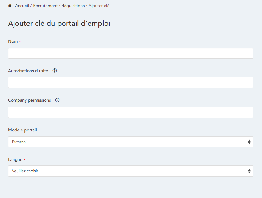 Maintenant que vous avez au moins un modèle de page d'emploi et une demande d'emploi, vous pouvez créer une clé de portail dans :