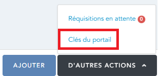 Cliquez sur le bouton Clés du portail en haut de l'écran, puis cliquez sur Ajouter en bas de l'écran suivant.