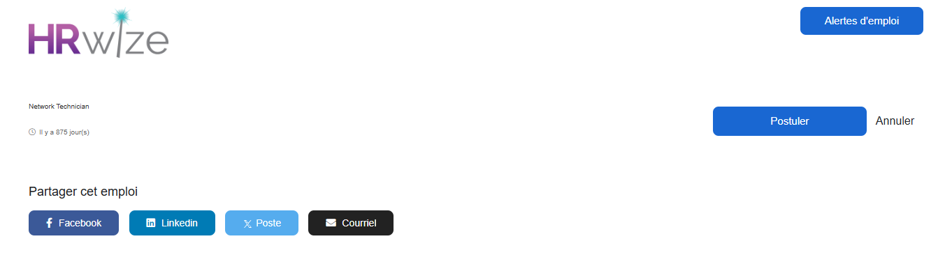 HRWize vous permet de créer des demandes d'emploi et de les afficher sur la page des carrières du site Web de votre entreprise.