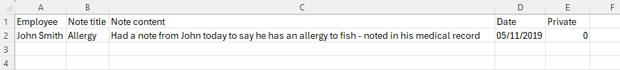 Private (Privé) - Cette note est-elle visible par le responsable de l'employé ? Les valeurs acceptables sont les suivantes