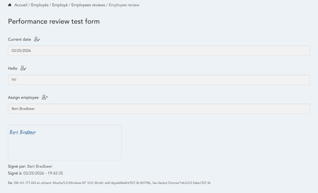 Une fois le module de performance activé, les utilisateurs pourront consulter leurs propres évaluations de performance ainsi que les évaluations complètes de leurs subordonnés.