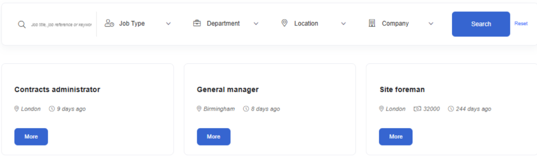- Police du sous-titre du contenu - Sélectionnez une police dans la liste déroulante qui sera utilisée pour les sous-titres du contenu dans la page de liste des offres d'emploi. Si vous avez utilisé le paramètre « Définir toutes les polices », cela aura reflété la police sélectionnée.