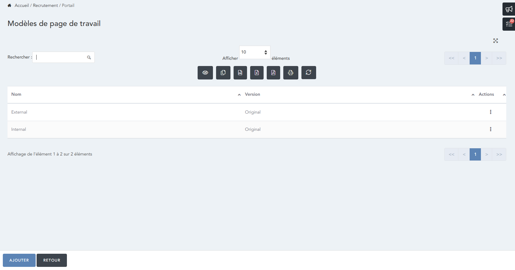 Les paramètres de la page Liste vous permettent de personnaliser et de concevoir votre portail d'emplois en fonction de votre marque. Pour accéder aux paramètres de la page Liste de recrutement, rendez-vous dans :