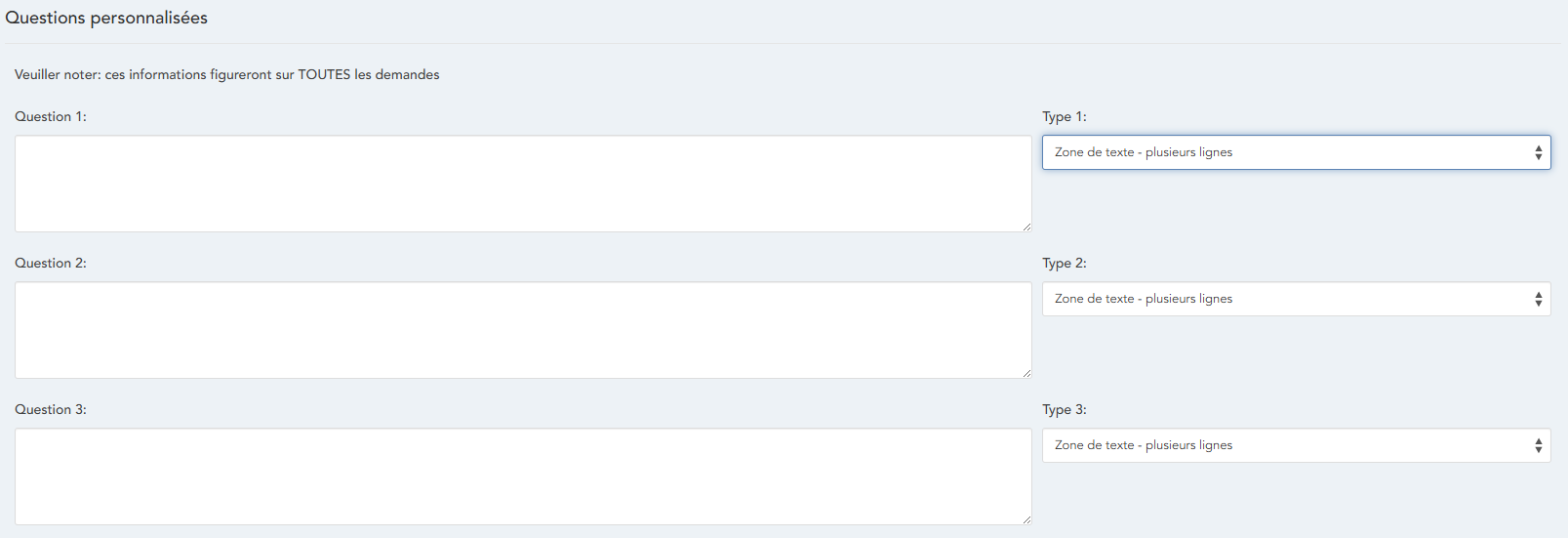 Remarque : celles-ci apparaîtront sur toutes les demandes :