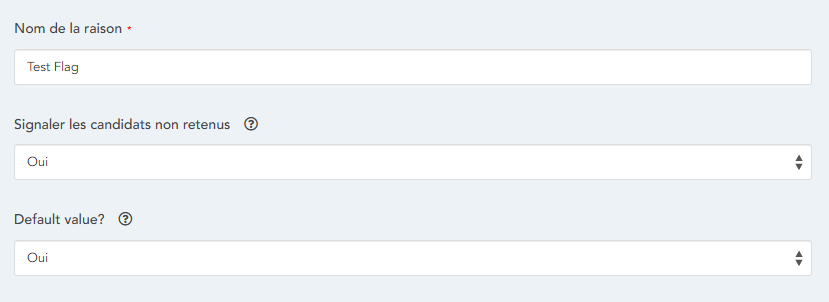 Vous aurez ici la possibilité de configurer un motif de rejet afin de signaler automatiquement un candidat lorsque ce motif lui est attribué.