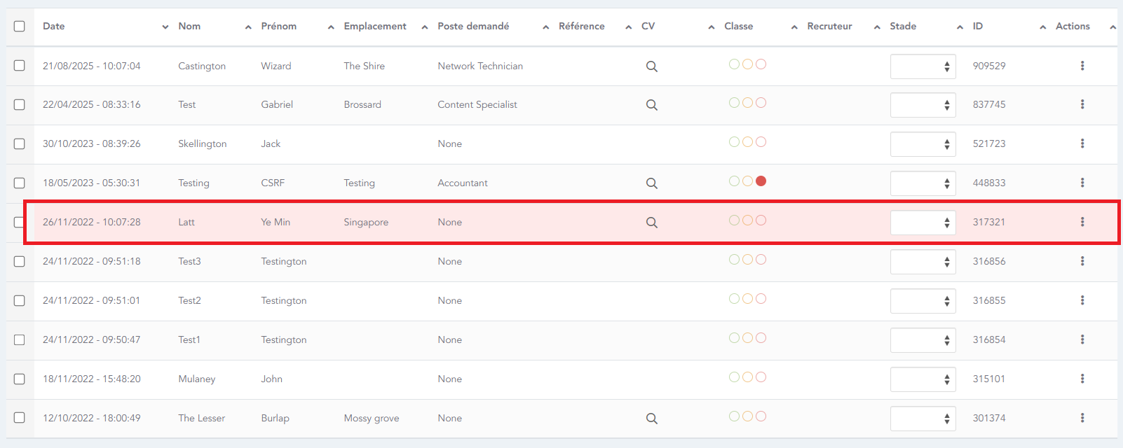Une fois qu'un candidat a été rejeté, vous avez désormais la possibilité de le marquer comme « signalé ». Cette option peut être utilisée pour les candidats que vous n'avez pas l'intention de prendre en considération s'ils postulent à nouveau à l'avenir.