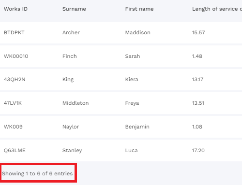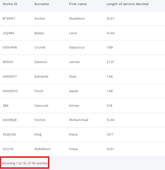 Dans le générateur de rapports HRWize, par défaut, un utilisateur disposant d'un niveau d'accès Administrateur ou RH (sans restrictions supplémentaires) peut créer et exécuter des rapports qui fournissent des informations sur tous les employés enregistrés. Dans cet exemple, une entreprise de 42 employés, tous sont signalés à l'utilisateur disposant d'un niveau d'accès Administrateur qui a créé et exécuté le rapport. Un utilisateur de niveau gestionnaire, disposant des autorisations appropriées pour les ensembles de données, peut exécuter tous les rapports qu'il a créés lui-même ou qui ont été partagés avec lui. Un gestionnaire ne pourra toutefois établir des rapports que sur les employés qui lui sont rattachés. Par défaut, un utilisateur de niveau « employé » n'a accès à aucun rapport. HRWize propose une série de groupes d'utilisateurs,