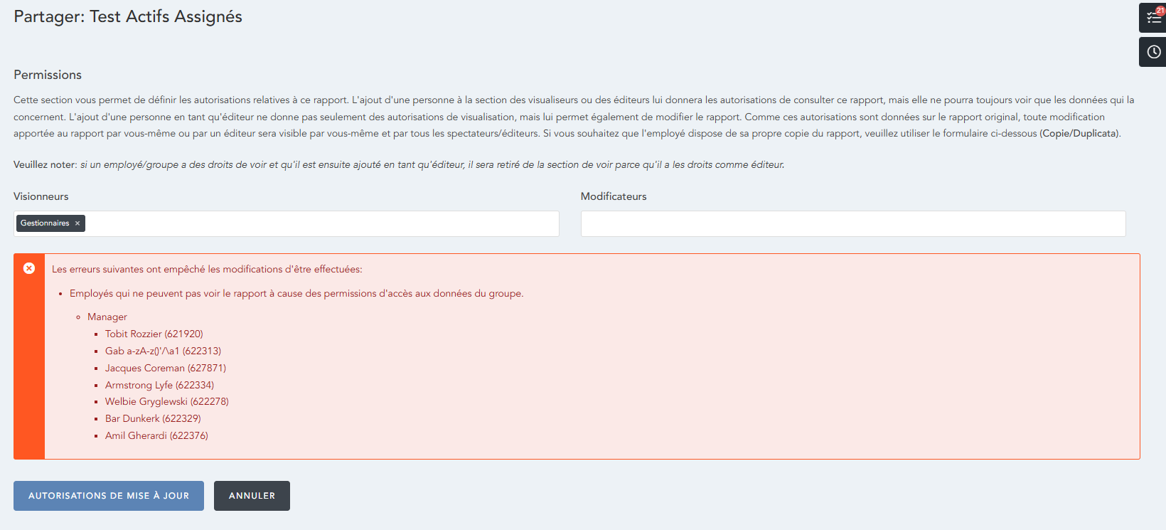 Après avoir créé un rapport et tenté de le partager avec un utilisateur, vous pouvez voir apparaître une erreur similaire à celle-ci :
