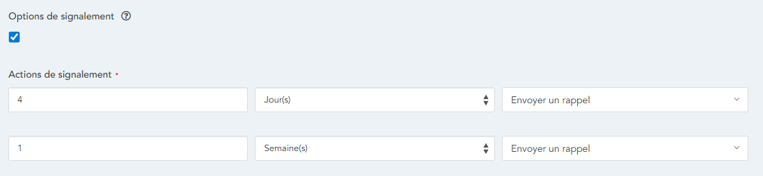 - Deux options d'escalade ont été définies dans cette étape. Il s'agit simplement de rappels pour le(s) destinataire(s) de l'étape. Elles sont les suivantes :